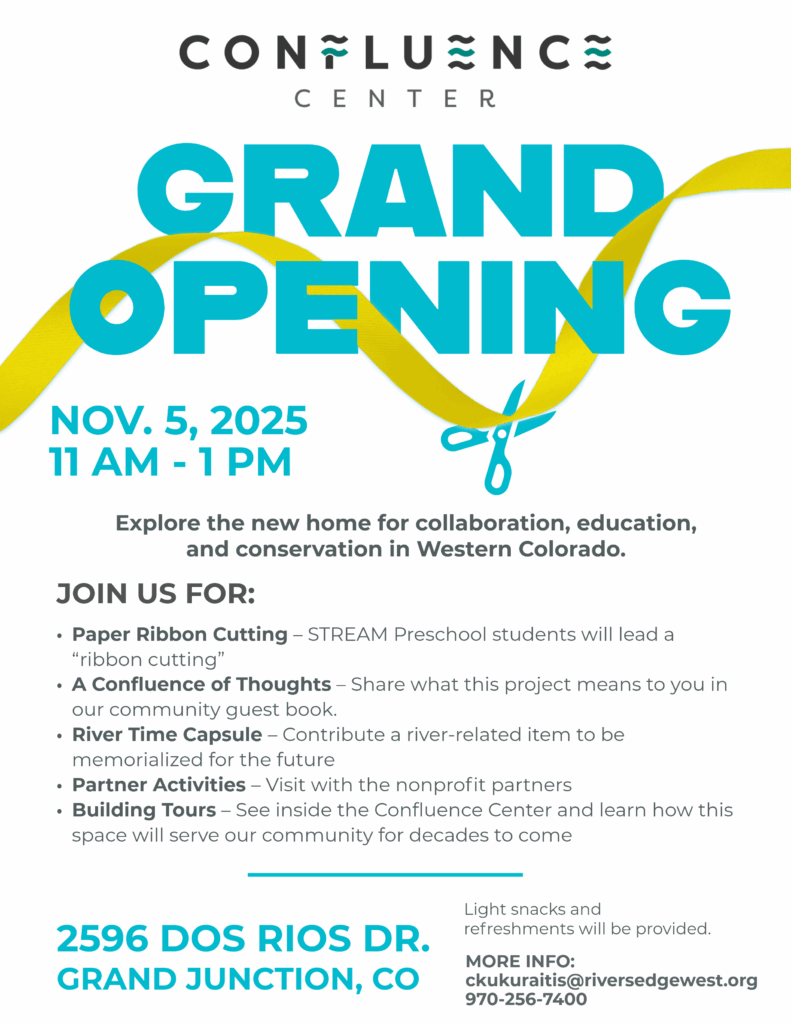 Join us for this community milestone, The Confluence Center’s Grand Opening! Come celebrate with us and explore The Confluence Center, the new home for collaboration, education, and conservation in western Colorado.